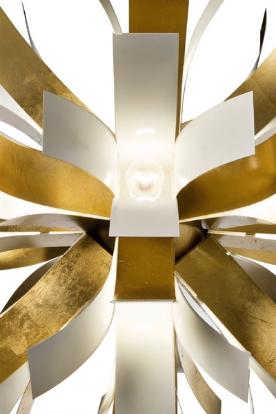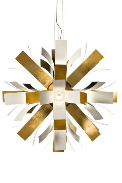 Çarpıcı Bloom Avize, her türlü modern dekoru zenginleştireceği kesin olan sofistike bir tasarım sergiliyor. Bu basit ama karmaşık sarkıt lamba, 80 cm çapında; gümüş-altın varaklı metal yapraklardan oluşmaktadır.