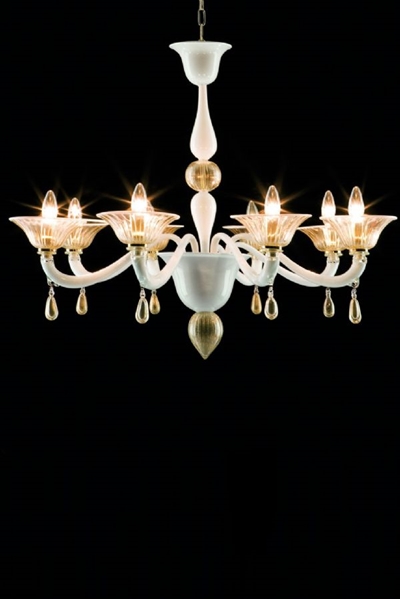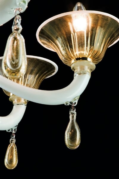 Beyaz ve şeffaf-altın tozlu murano cam Altın metal aksam Çap: 100 cm Yükseklik: 85 cm