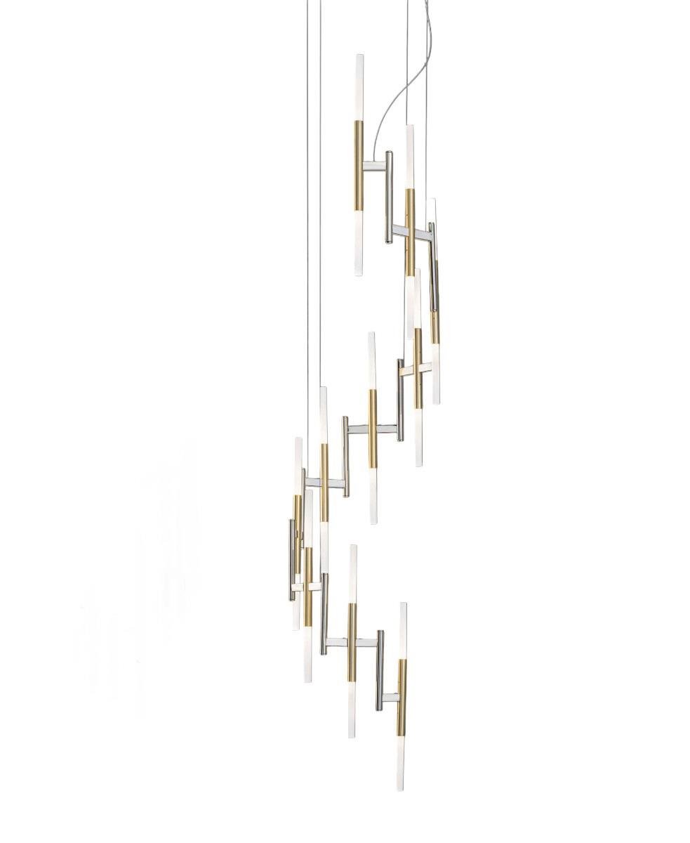 Çok yönlülüğü ve yeniliği bir araya getirerek, harika bir kişiliğe sahip, eklektik bir stil yaratan bir koleksiyon. Mat altın ve parlak krom Çap: 40 cm Yükseklik: 210 cm